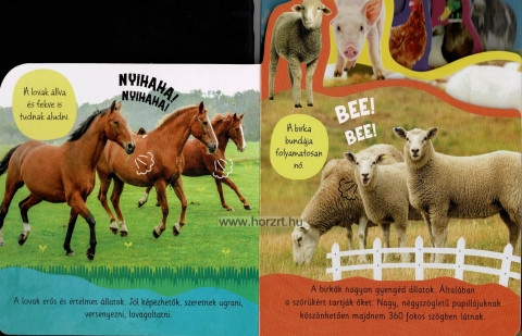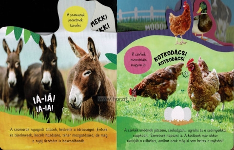 A gyönyörű és érdekes képek segítenek megismerni a tanyasi állatok szokásait, az állatok hangját és rengeteg mókában lesz részed. Ez a könyv tökéletes választás, ha szereted az állatokat, és kíváncsi vagy, mi mindent csinálnak a farmon!