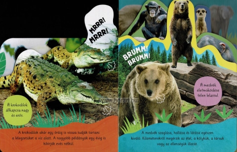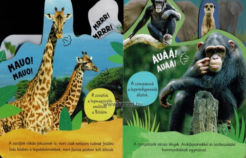 Ez a könyv tökéletes választás minden gyermek számára, aki szereti a természetet, és szívesen tanulna többet a vadállatokról. Fedezd fel a természet csodáit, és hallgasd meg, milyen hangja van a vadon élő állatoknak. A könyv egy szuper, interaktív kalandot kínál, ahol a gyerekek nemcsak olvasnak, hanem hallgatnak is! A könyvben lévő gombok segítségével megismerheted, hogyan morog a tigris, hogyan ropogtatja a bambuszt a panda és milyen hangot ad a medve! A hangok segítenek jobban megérteni az állatok életét és megjegyezni azt, amit olvasol. A könyv segít abban is, hogy jobban megismerd a természetet, és még többet tájékozódj az állatvilágról!
