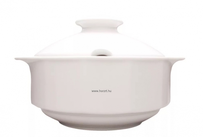 Porcelán levesestál fedővel, 3L, megerősített széllel. Mikrohullámú sütőben használható. Mosogatógépben mosható.