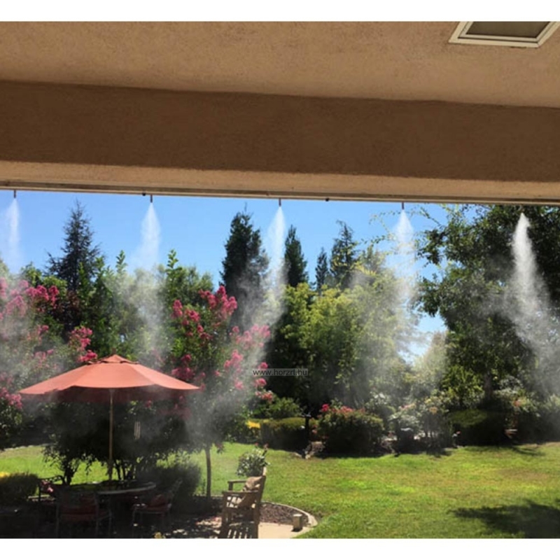 Pillanatok alatt saját párakaput, párafüggönyt építhetsz az udvarodon vagy teraszodon ezzel a 10 méteres készlettel! A 10 db fúvóka porlasztva juttatja a vizet a levegőbe, nagy mértékben csökkentve ezzel a hőérzetet.