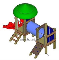 A kupolatető, a csúszda és az összekötő alagútcső anyaga műanyag. A szerkezet, deszkázat, padlózat anyaga telített fenyő. Az oszlopok anyaga, telített fenyő, újrahasznosított műanyag. A létra oszlop, mászófal oszlop anyaga újrahasznosított műanyag. A mászófal csúszásmentes rétegelt lemez. A kapaszkodók fémből készülnek, horganyzott, ill. színterezett kivitelben. Az oszlopok horganyzott fémsarukkal és újrahasznosított műanyagból készült toldatokkal a talajban rögzítettek. A kötőelemek horganyzottak. A csavartakarók és a mászófal kapaszkodók műanyagból készültek.