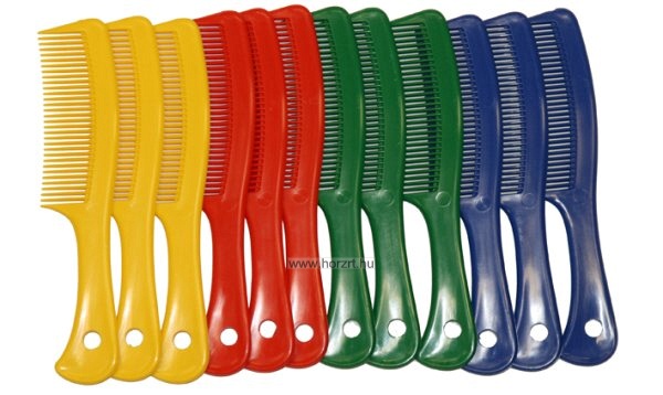 A készlet tartalma: 12 db fésű (3 db piros, 3 db kék, 3 db sárga, 3 db zöld színű) Kifejezetten intézményi felhasználásra kifejlesztve, lekerekített szélei miatt biztonságos a gyerekek számára is. A nyelén kialakított lyuk segítségével akár felakasztva is tárolható! Ezek az élénk színű fésűk rendkívül ellenállóak hővel és vízzel szemben és mosogatógépben is használhatóak. Különleges anyag összetételük miatt szinte összetörhetetlenek!