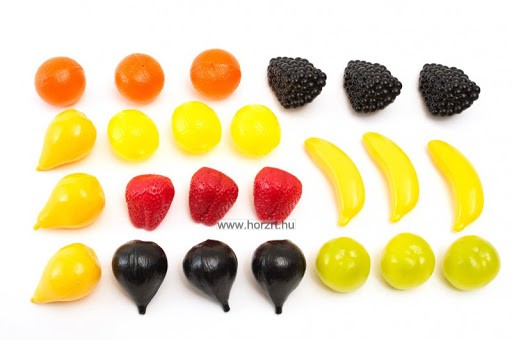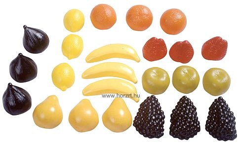 3 db alma, 3 db citrom, 3 db körte, 3 db szeder, 3 db eper, 3 db, banán, 3 db narancs, 3 db fekete füge
