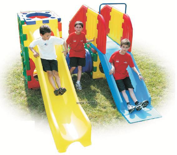 - 1 db lépcsőelem korláttal és csúszdával. Az elemen lévő lyuk átmérője 44 cm.