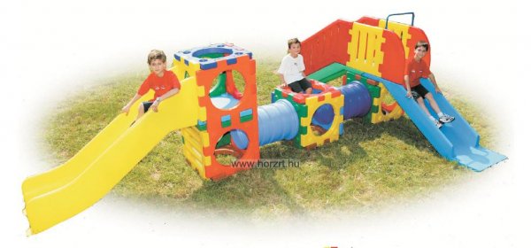 - 1 db lépcsőelem korláttal és csúszdával. Az elemen lévő lyuk átmérője 44 cm.