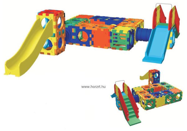 - 1 db lépcső korláttal és csúszdával. Az elemen lévő lyuk átmérője 44 cm.