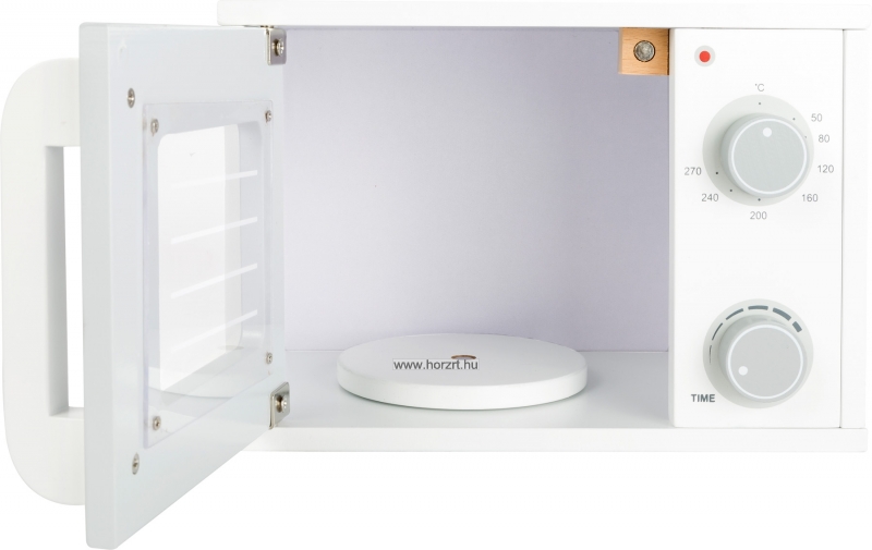 A fa mikrohullámú nagyon hasonlít a valóságoshoz: kettő gombbal lehet a hőmérsékletet és az időt beállítani, a gombok tekerésre kattogó hangot adnak.