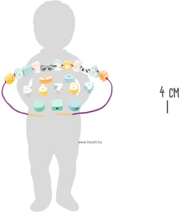 A nagyméretű gyöngyök és a vastag fűzőfonál mind hozzájárul a kicsik könnyed játékához.