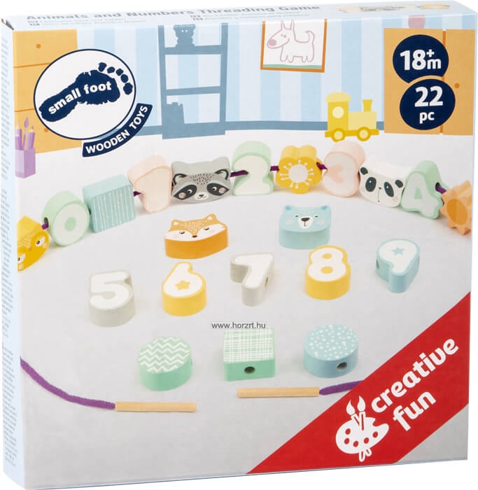 Összesen 21 db fa fűzhető formát tartalmaz a készlet.