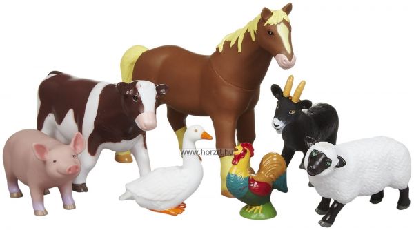 A csomagban megtalálható mind a hét ismert és szeretett állat a farmok világából, így a ló, a kecske, a tehén, a malac, a liba, a bárány és a kakas is helyet kapott a készletben.