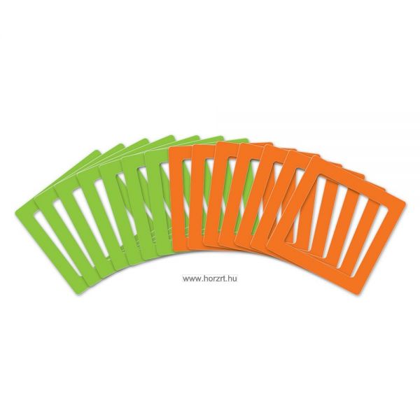 A készletben a szőnyegen kívül található: 2 db felfújható, citromsárga dobókocka 1-6-ig lila színnel számozva és 7-7 db zöld és narancssárga jelölő keret.