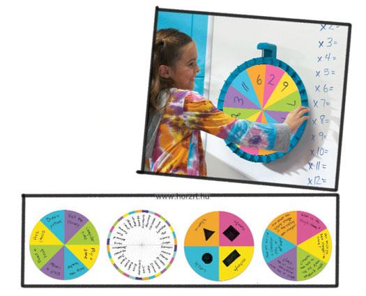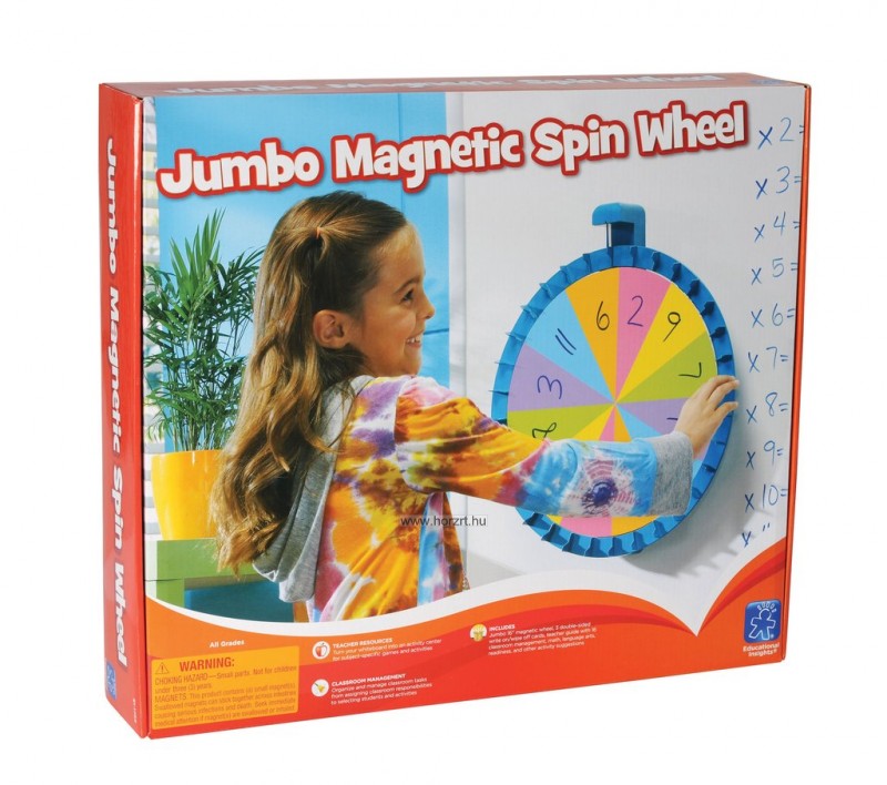 A Learning Resources Jumbo termékcsaládjának mágneses forgatható köre 40 cm átmérőjű.