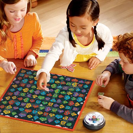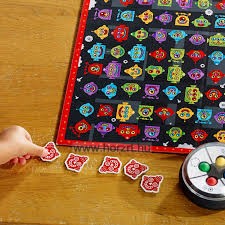 2, Mindenki a játéktáblára szegezi a szemét, és megpróbálja megkeresni a robotfejet, amelynek színei megegyeznek a kipörgetett színekkel.