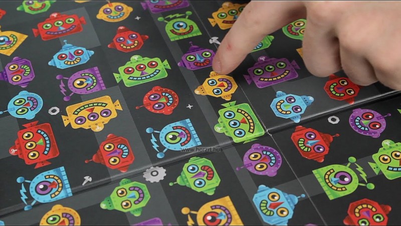 - 1 db játéktábla 120 különböző robotfejjel
