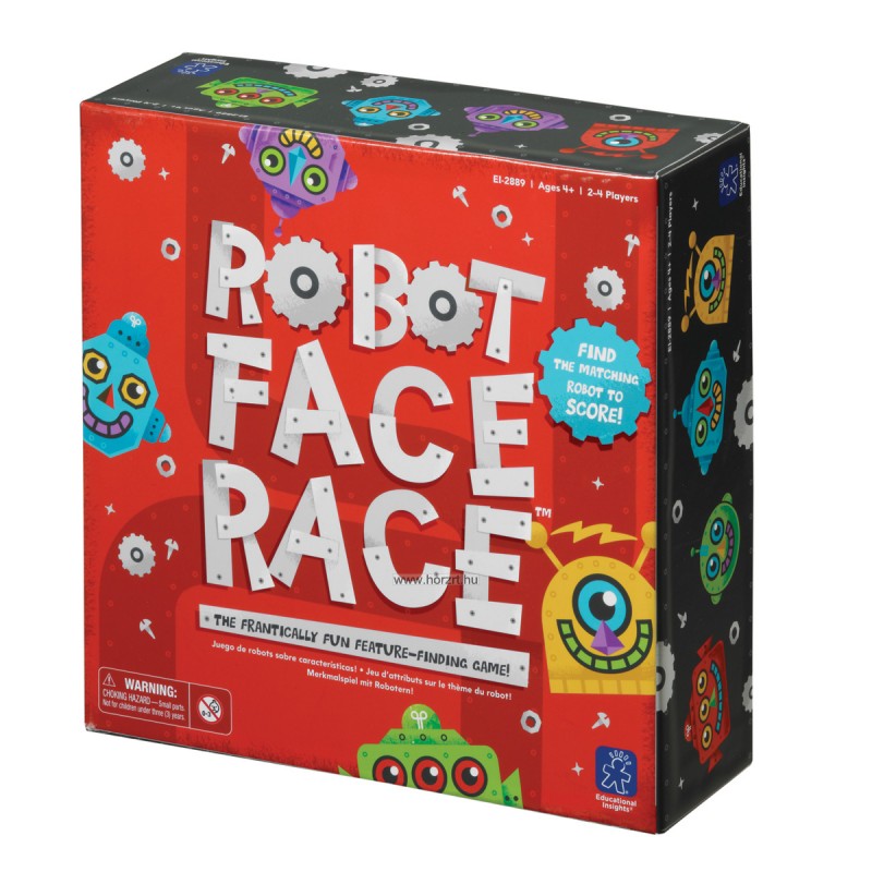 A Learning Resources Robot Arcok - Figyelj! Keresd! Reagálj! készlete 1 db játéktáblát 120 db különböző robotfejjel, 20 db zsetont 4 féle színben és 1 db robot pörgettyűt tartalmaz.