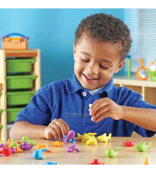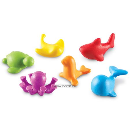 A Learning Resources szortírozó tengeri állatok készlete 72 db 3-4 cm-es figurát tartalmaz, 6 különböző színben.