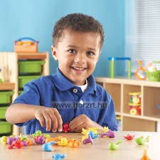 A vidám és élénk színű, puha műanyag tapintású formákat kézzel vagy akár szortírozó csipesz segítségével is szét lehet válogatni!