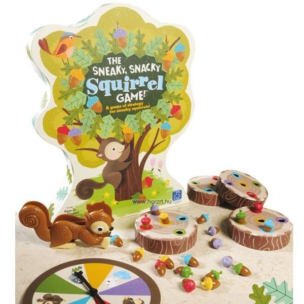 Erdei barátaid éhesek, és szükségük van a segítségedre! Pörgesd meg a pörgettyűt, végy ki a mókus csipeszeddel egy olyan színű makkot, amilyet pörgettél, és rejtsd a fatörzsedbe biztos helyre. Légy az első, aki ínycsiklandozó makkokkal tölti meg a fatörzsét, hogy megnyerd a játékot! A feladat egyszerűnek tűnik, de vigyázz: ha szomorú mókust pörgetsz, elveszíted a kört. Ha viszont trükkös mókust pörgetsz, elcsenhetsz egy makkot valamelyik játékostársadtól. Csak ügyesen, kicsi mókus!