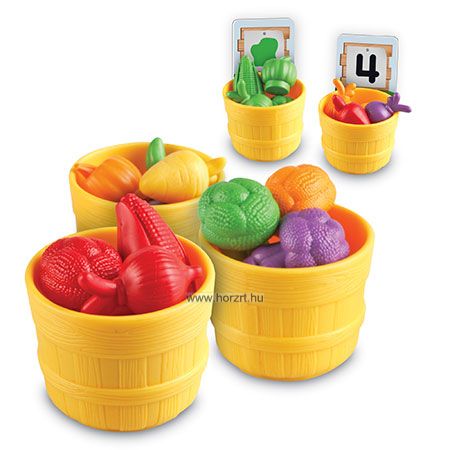 Fejlesszük a kisgyermekek készségeit friss kerti zöldségekkel! A játék egy elbűvölő vetemé-nyeskertbe varázsolja a kicsiket, ahol az élethű kosarak válogatásra csábítják őket. A szortíro-zás fejleszti a szín-és formafelismerést, a finommotorikát, az ítéletalkotást, a számlálás techni-káját és a mennyiségfogalom alakulását. Eközben a gyermekek megismerhetik a zöldségeket. Játék közben a kicsik logikus gondolkodásának és beszédkészségének fejlődését is segíthetjük, ha különféle kérdéseket teszünk fel, pl.: „Honnan tudod?”, „Miből gondolod?”, ”Hogyan jöttél rá?”.
