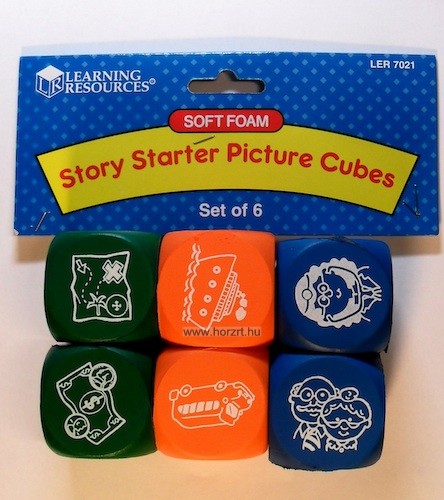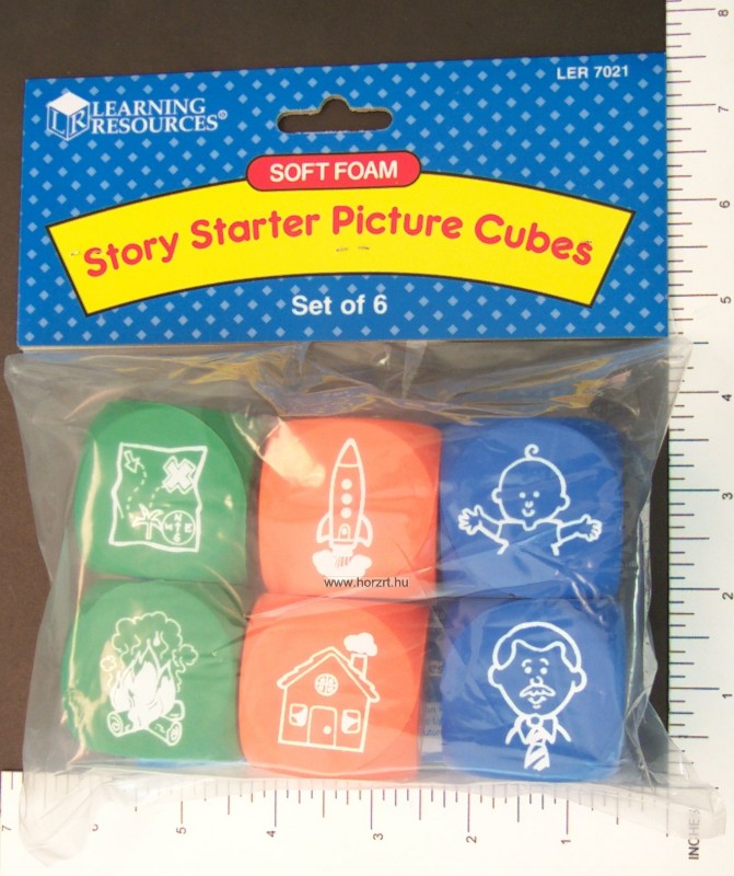 A Learning Resources Mondj egy történetet! polifoam kocka szettje 6 db képes dobókockát tartalmaz, 3 különböző színben.