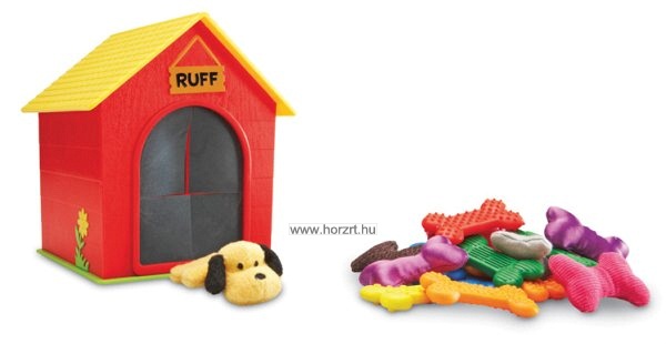 A Learning Resources Ruff kutyaháza 1 db 12x12 cm-es kutyaházat, 1 db plüsskutyát, 20 db csontot (10 féle textúrával) és 1 db játékleírást tartalmaz.