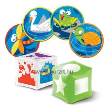 A Learning Resources Ugrás a folyóba! játékának tartalma 1 db műanyag, színes szőnyeg, 2 db felfújható 12 cm-es kocka, 40 db állatos korong és egy tevékenység útmutató.