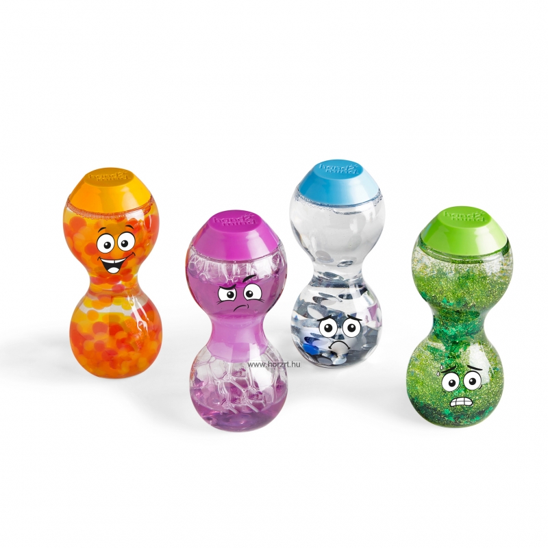 "Vizuálisan és tapintásra is különböző élményt nyújtanak. Az egyes palackok mozgása (lassú, gyors, fodrozódó stb.) különböző érzelmi állapotokhoz igazodik. A játék így hatékonyan támogatja az érzelmi tudatosságot és a megnyugvást – különösen ajánlott szenzoros integrációs terápiákhoz vagy óvodai csoportos beszélgetésekhez is.