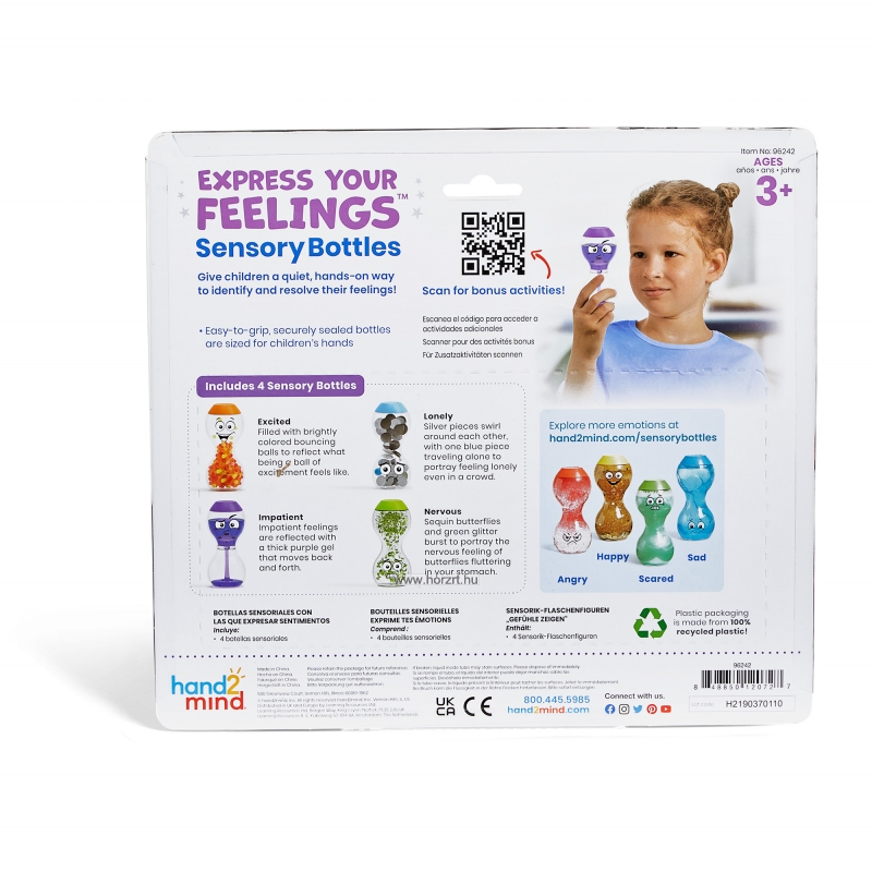 - Empátia kialakítása: A palackokon lévő karakterek arckifejezései segítenek azonosulni a különböző érzelmekkel.