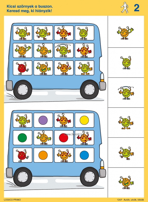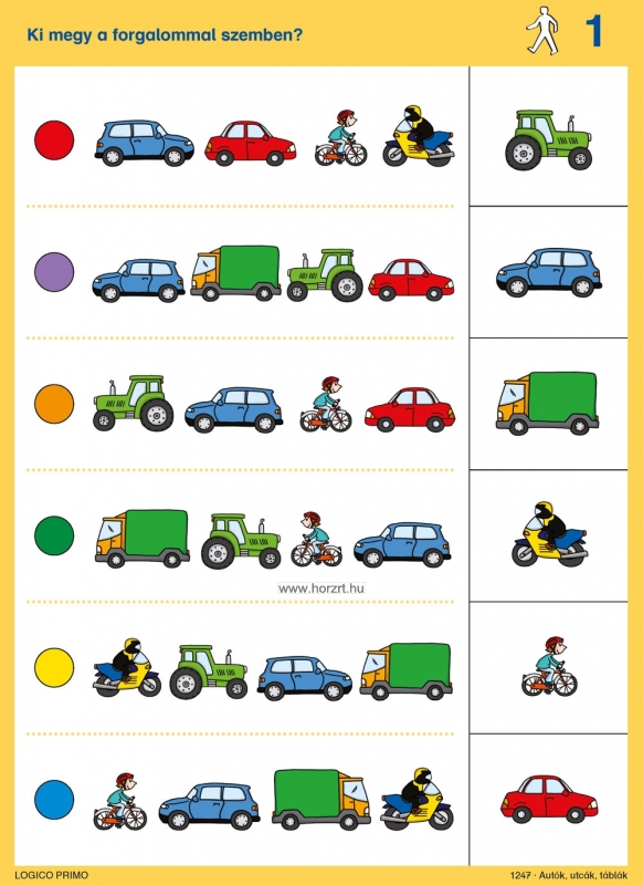 5 éves kortól Tartalma: 16 db feladatkártya, a hátoldán a megoldásokkal Az Autók, utcák, táblák az alábbi témákat dolgozza fel: Közlekedési táblák felismerése Biztonságos gyalogos közlekedés Logikai kapcsolatok Közlekedési szabályok betartása KRESZ alapok A Logico Primo feladatkártyák csak a Logico Primo kerettel együtt használhatóak!