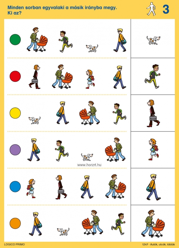 A Logico Primo feladatkártyákat a 3 és 6 év közötti óvodások és iskola-előkészítő csoportokba járó gyermekek számára alkották meg. Fejleszti a szem-kéz koordinációt, a vizuális észlelést, a mennyiségek és színek felismerését, a térbeli tájékozódást, a nyelvi kifejezésmódot, a koncentrációt és a logikai összefüggések gyakorlását. Az Autók, utcák, táblák az alábbi témákat dolgozza fel: Közlekedési táblák felismerése Biztonságos gyalogos közlekedés Logikai kapcsolatok Közlekedési szabályok betartása KRESZ alapok A Logico Primo feladatkártyák csak a Logico Primo kerettel együtt használhatóak!