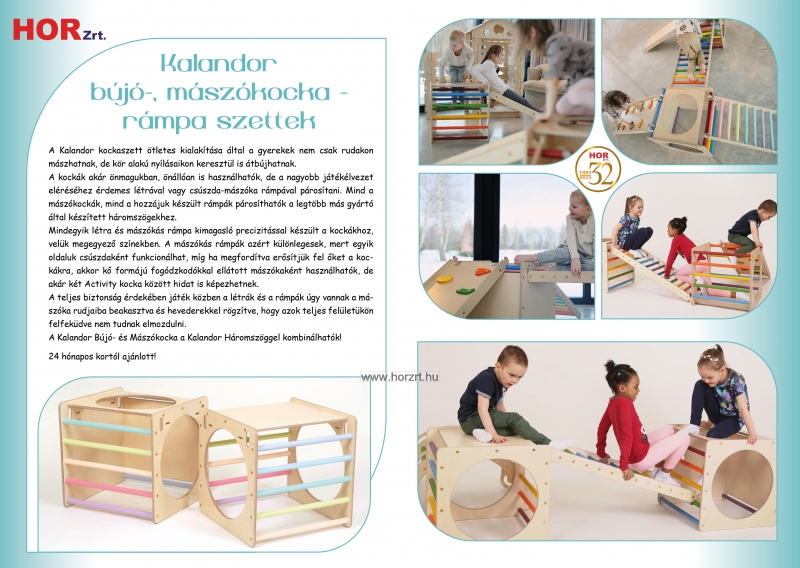 A Kalandor kockaszett ötletes kialakítása által a gyerekek nem csak rudakon mászhatnak, de kör alakú nyílásaikon keresztül is átbújhatnak.