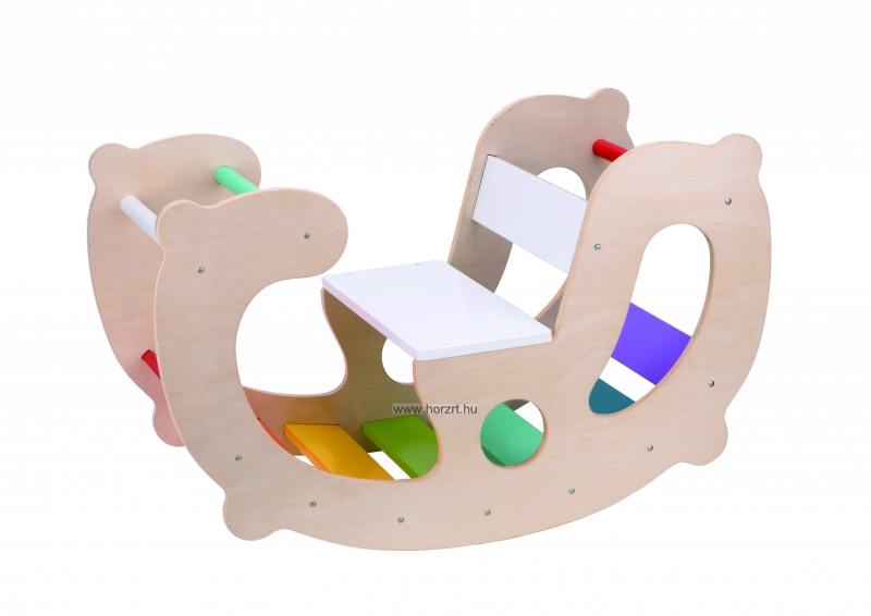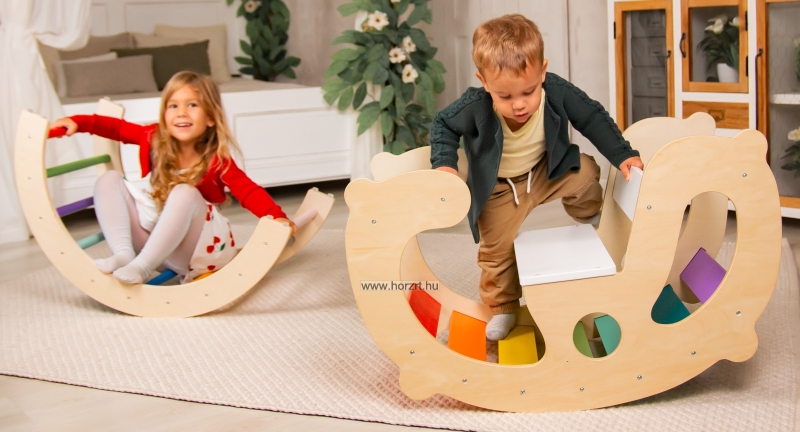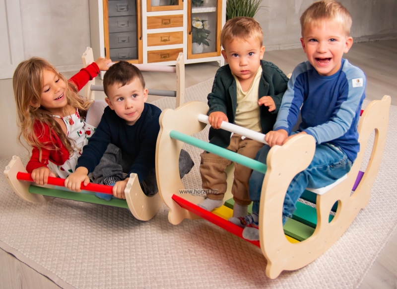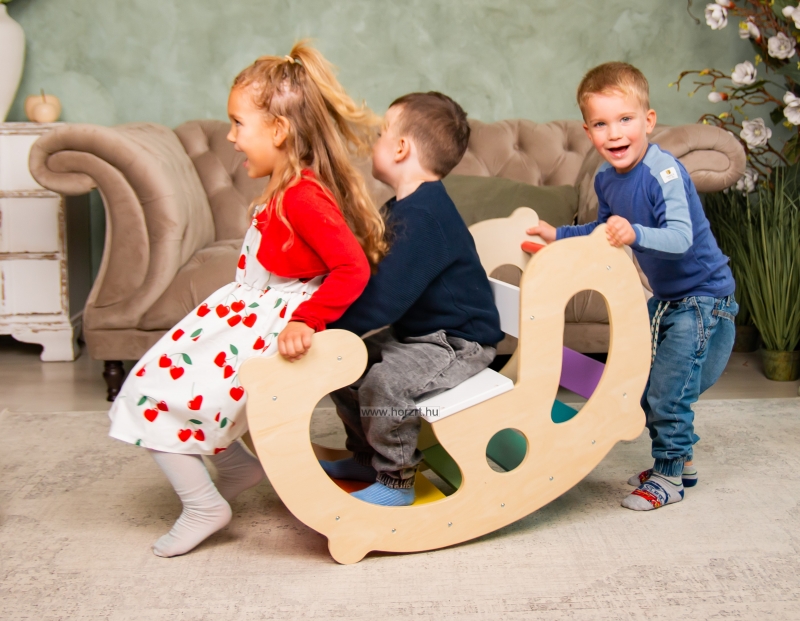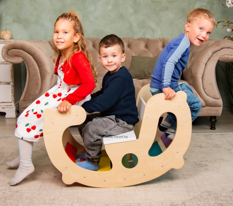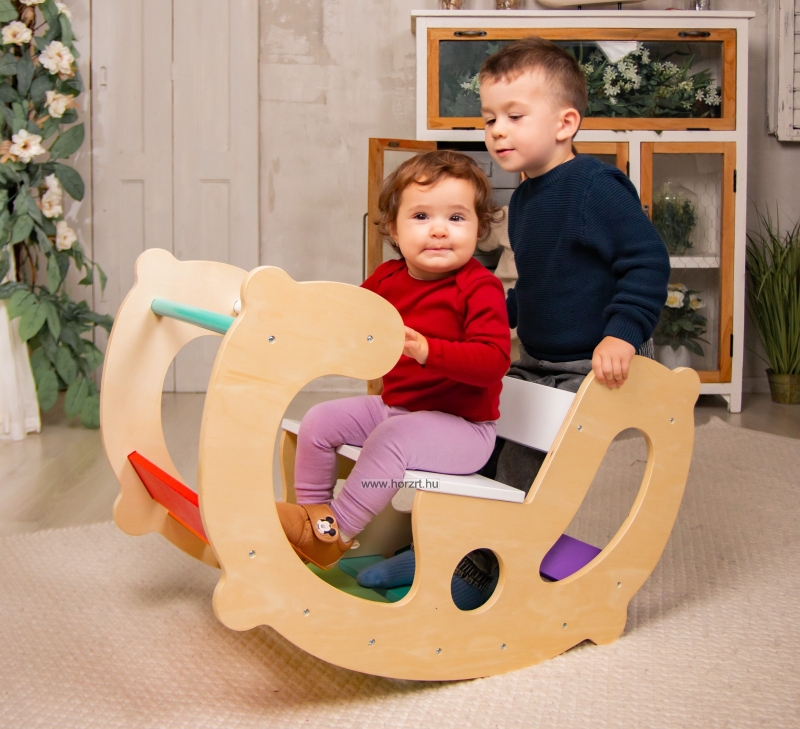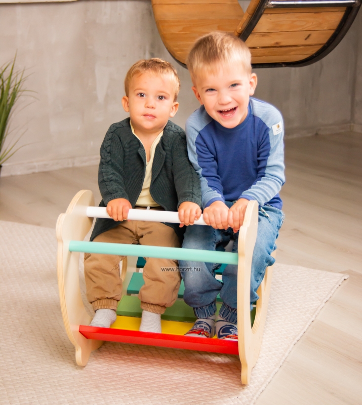 Sokoldalú, fából készült játék, amely fejleszti a gyerekek mozgáskoordinációját és egyensúlyérzékét. Élénk színei és hintázó funkciója szórakoztató élményt nyújt a gyerekeknek.