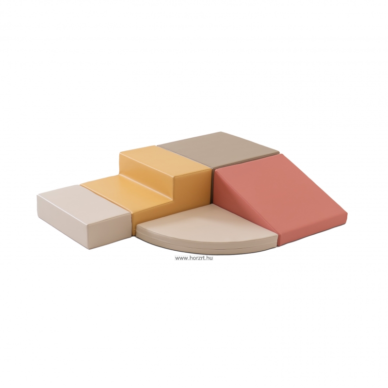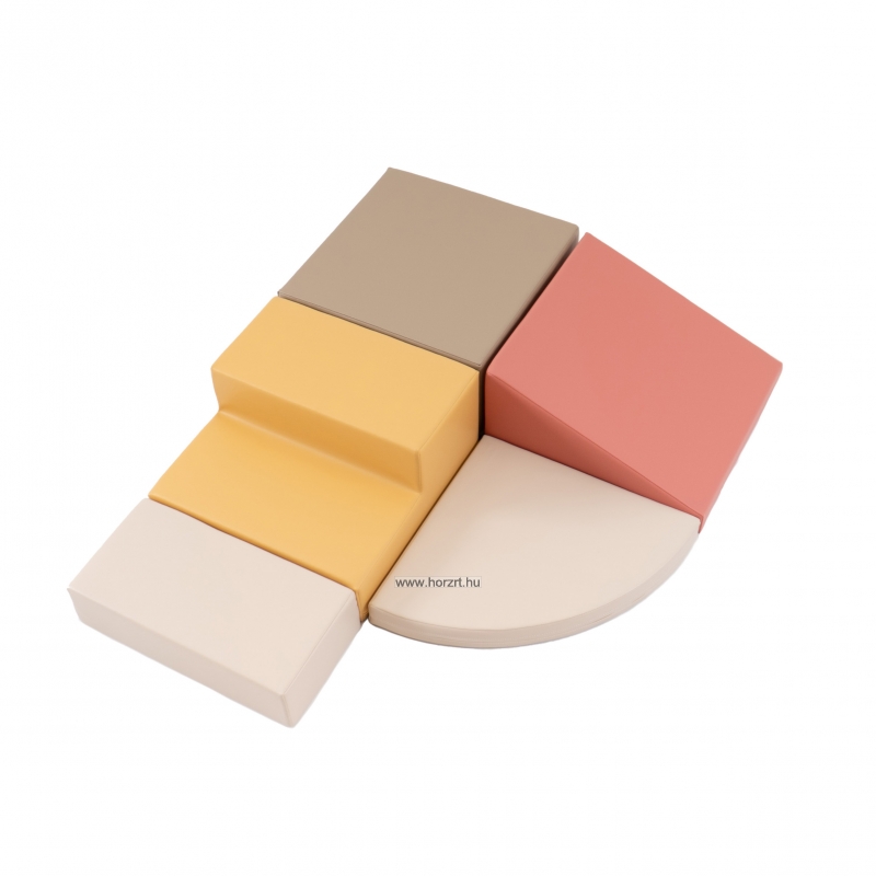 A darabok puha habszivacsból készültek, pasztell színű műbőr bevonattal.