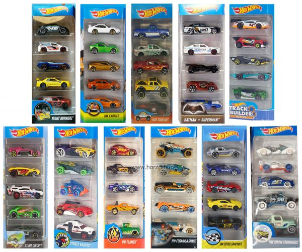 Hot Wheels sportautók; Hot Wheels autók; Hot Wheels terepjárók; Hot Wheels munkagépek; Hot Wheels mentőjárművek - 5 db-os készlet;
