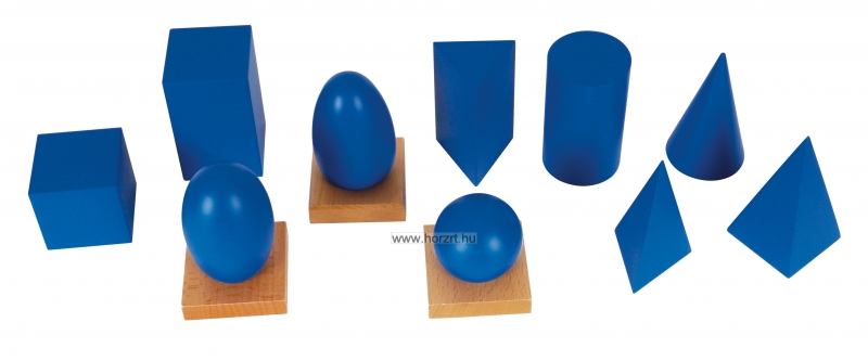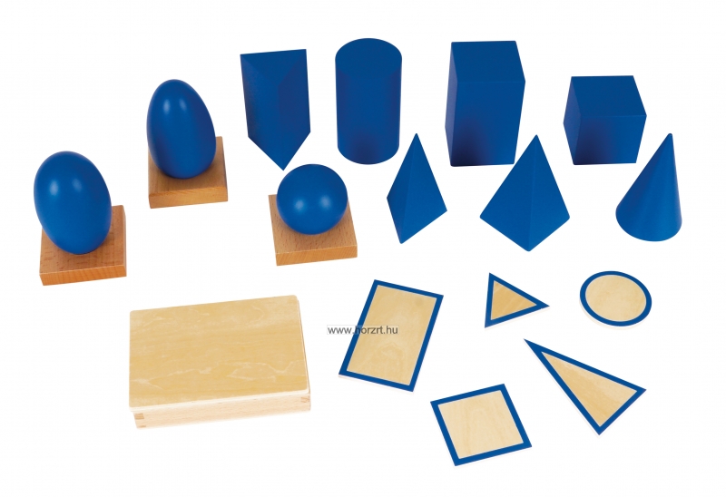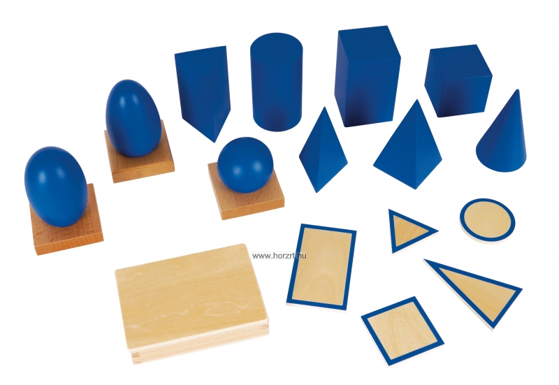 A geometriai testeket egy kosárba helyezzük, kendővel letakjuk. A pedagógus először a gömböt veszi elő, elgurítja, miközben bemutatja: „Ez egy gömb.” Ezután a kocka és a henger következik, majd a többi geometriai test is. A feladat nehezíthető úgy, hogy a gyermeknek meg kell keresnie a például a gömböt a kosárból, vagy bármilyek másik alakzatot. A következő lépésben a pedagógus egy testet mutat, és megkérdezi: „Mi ez?” A feladat tovább fokozható még úgy, hogy a gyerekek szemét bekötik, és tapintással, érintéssel kell felismernie, hogy mi van a kezében.