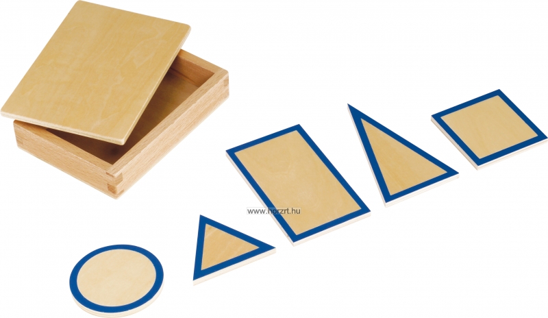 Kiváló minőségű Montessori tananyag, amely segíti a gyermekeket a geometriai formák és azok jellemzőinek megismerésében. Az 5 db fa alapforma egy praktikus fa dobozban van. Mérete: 16,3x10x,6x2,4 cm.