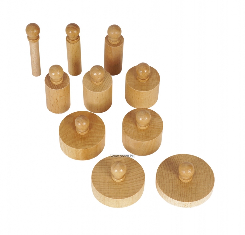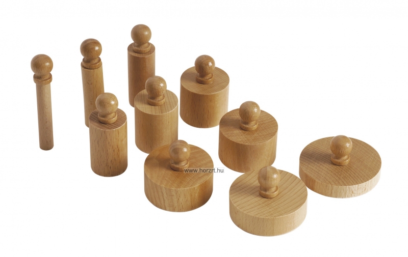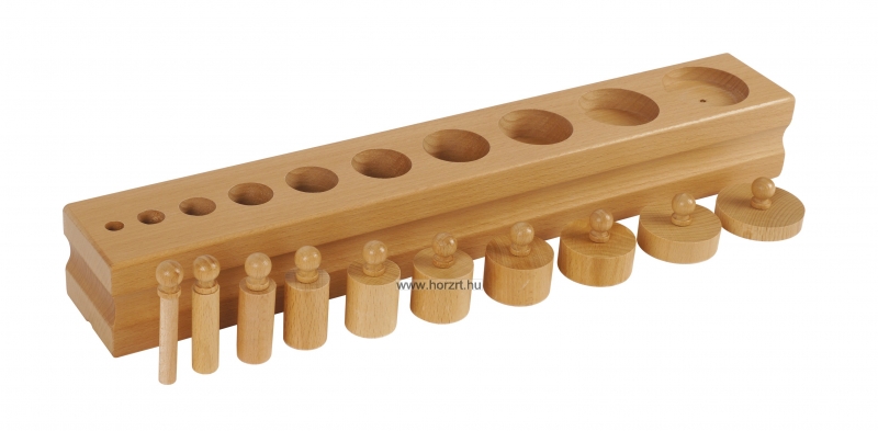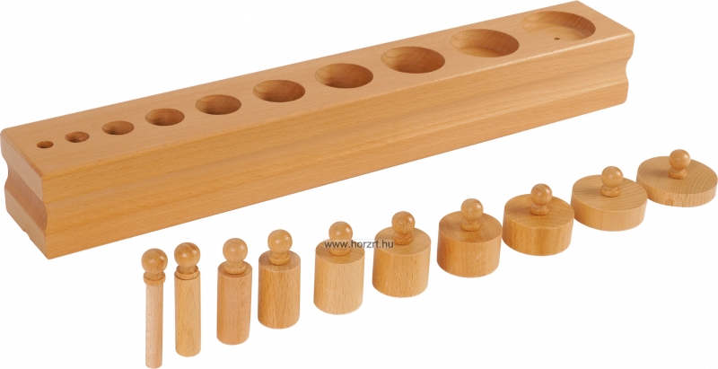 Ideális eszköz a gyerekek számára a különböző dimenziók és formák felfedezésére. 1 db blokk, 10 db henger