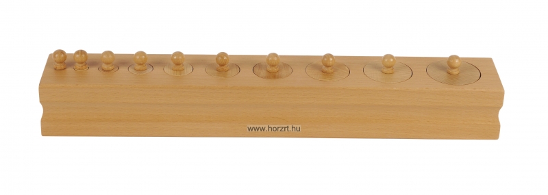 Ez a Montessori eszköz segít a térbeli érzékelés és a finommotorikus készségek fejlesztésében, miközben az alapvető matematikai fogalmakat, mint a vastag, vékony, széles, keskeny stb. is megismerteti a gyerekekkel.