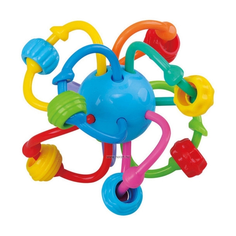 Élénk színei és zörgő-mozgó alkatrészei, valamint könnyen megmarkolható kialakításával mind arra ösztönzi a babákat, hogy folyamatosan a kezükben legyen, és hosszú ideig játszanak vele.