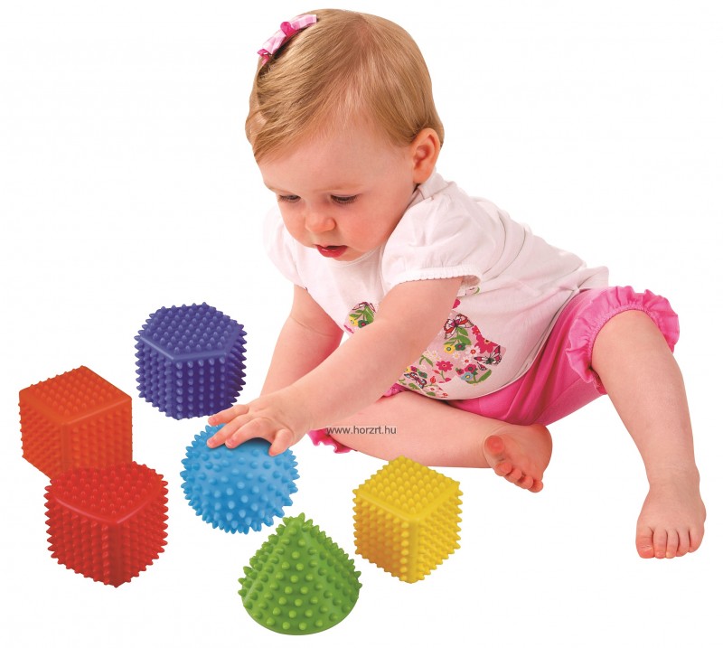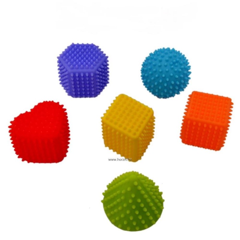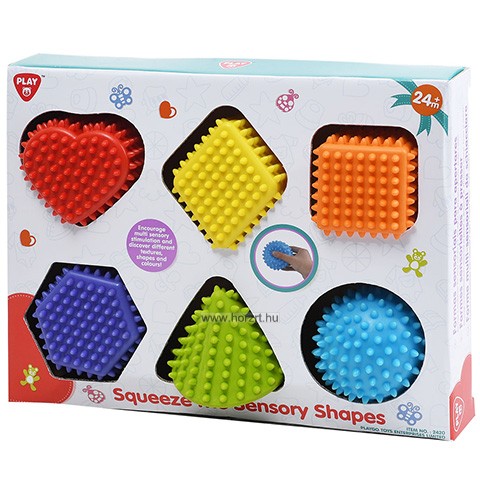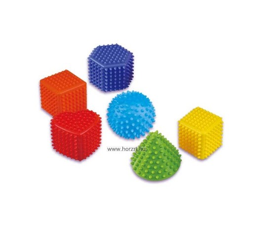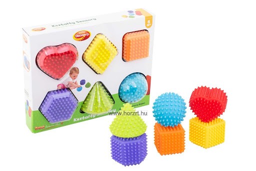 A készletben 6 db puha színes forma található, amely segít a gyerekeknek megtanulni a különböző színeket és geometriai formákat. A puha anyagnak köszönhetően a picik is könnyedén betudják nyomni a formákat. Fejleszti a kicsik tapintását, és erősíti a kezüket.