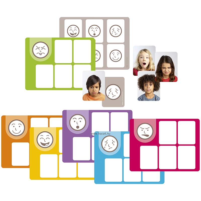 A játék 4 féle lehetőséget kínál a gyerekeknek, mellyel megtanulják azonosítani és kifejezni az érzelmeiket. Beszéd, utánzás által, csoportosítással és 2 lottójáték segítségével. - Nathan