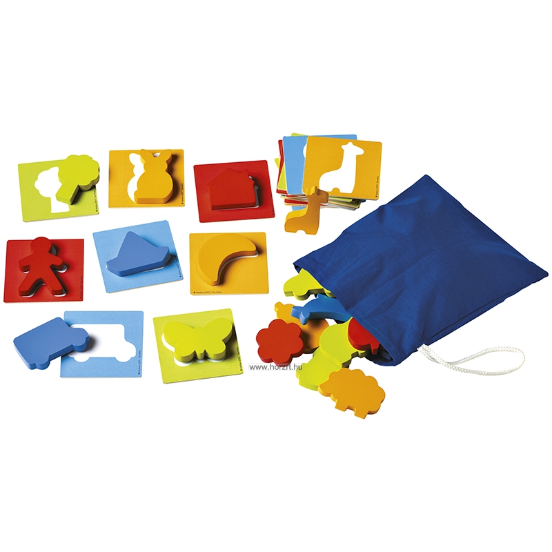 Eleinte a gyermekek lottózhatnak a faelemekkel. Ha már jól ismerik őket, a fafigurákat zsákba rejtjük, és a gyerekek tapintás alapján keresik meg a kartonkártyára illő formákat. Minden játékelem körvonalát megtaláljuk egy-egy kartonkártyán. - Nathan ÖNNEK AJÁNLJUK