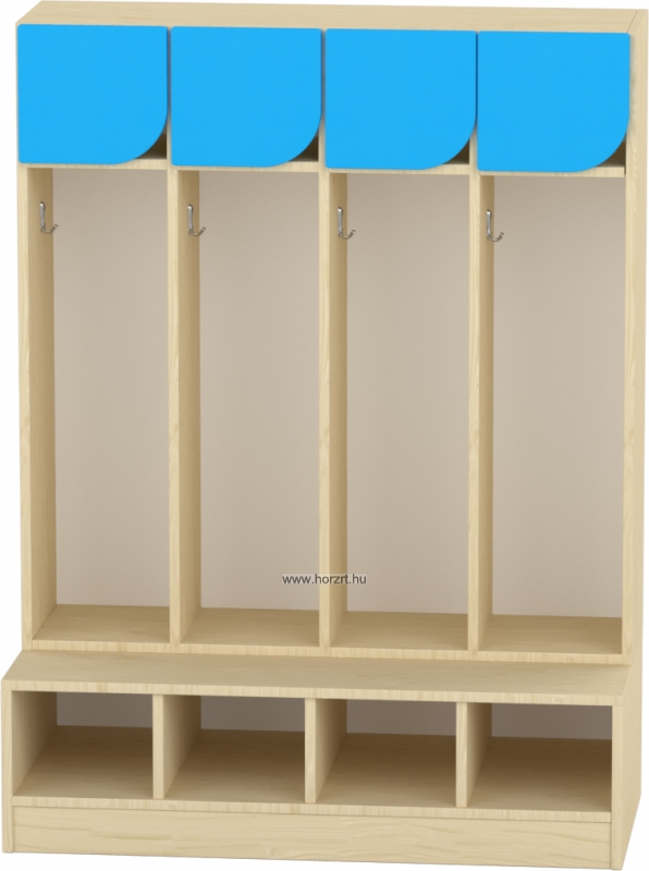 Több csoport esetén akár az eltérő ajtószínekkel is megkülönböztethetjük a csoportokat.Ülésmagasság 28 cm, egy gyerekre jutó fakk belső szélessége 23,8 cm, a felső, polcos tárolóhely belső magassága 21,4 cm.