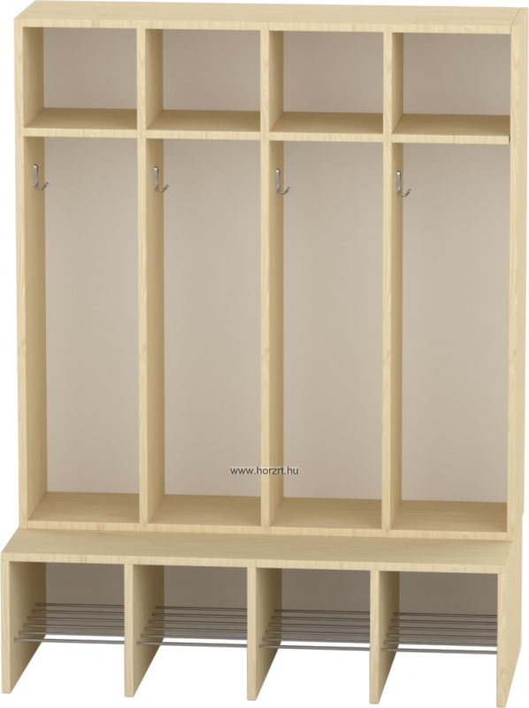 Komfort gyermeköltöző 4 fős , rácsos cipőtartóval-juhar
