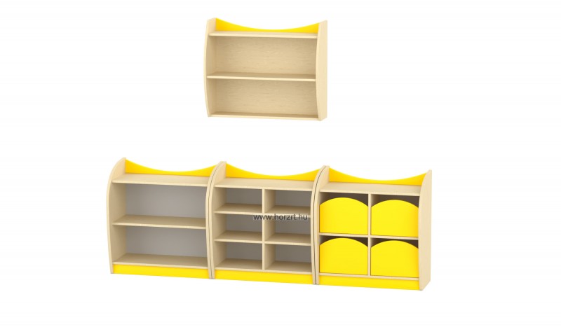 Anyaga: Laminált bútorlap ABS élzárással. Kiválóan alkalmas bölcsődei, óvodai csoportszobába, íves kialakítása miatt. A terméket készre szerelve szállítjuk.