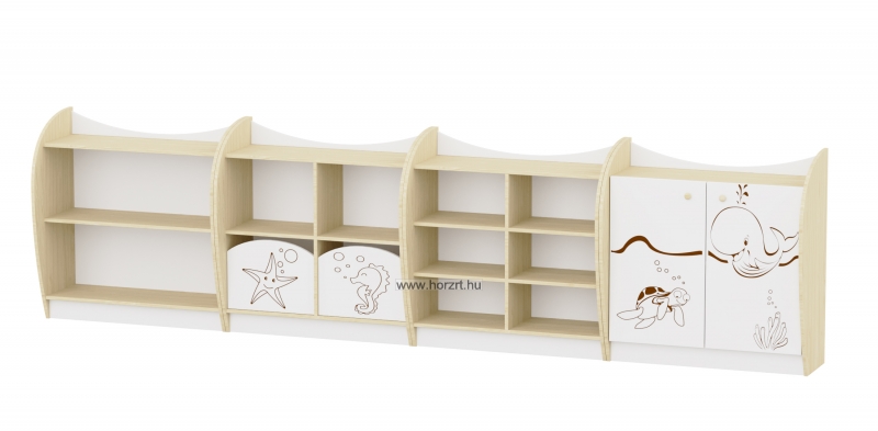 Marci íves kisszekrény - 6 fakkos, nyitott, juhar-fehér, 82x38x86 cm