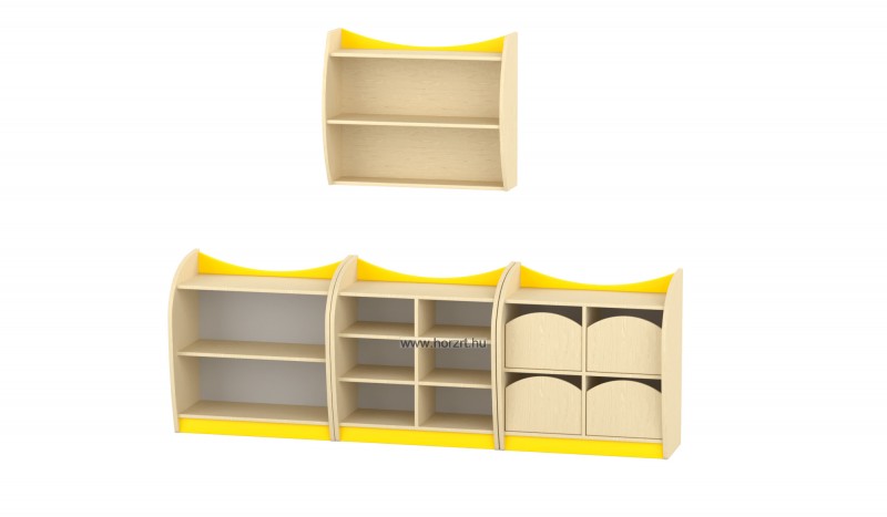 Anyaga: Laminált bútorlap ABS élzárással. Kiválóan alkalmas bölcsődei, óvodai csoportszobába, íves kialakítása miatt. A terméket készre szerelve szállítjuk.