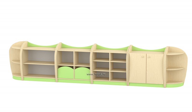 Anyaga: Laminált bútorlap ABS élzárással. Kiválóan alkalmas bölcsődei, óvodai csoportszobába, íves kialakítása miatt. A terméket készre szerelve szállítjuk.