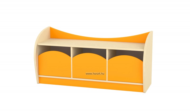 Marci alacsony szekrény,<br>3 fiókkal, juhar-narancs,<br>narancs színű fiókokkal