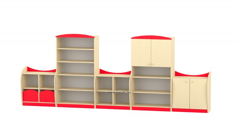 Marci 4 fakkos, nyitott kisszekrény, juhar-piros Marci 4 fakkos, nyitott kisszekrény, juhar-piros